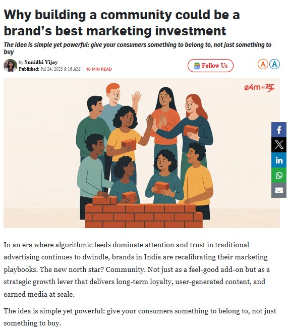In a feature by exchange4media, Senthil Kumar Hariram, founder and managing director, FTA Global, shared his perspective on why brands must prioritise community over conventional campaign-led strategies.