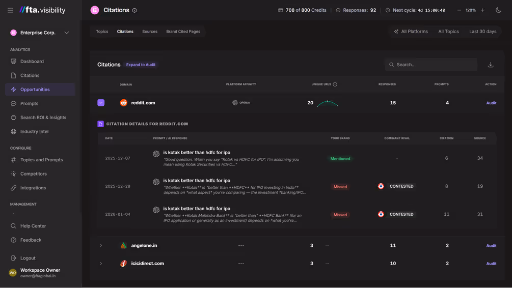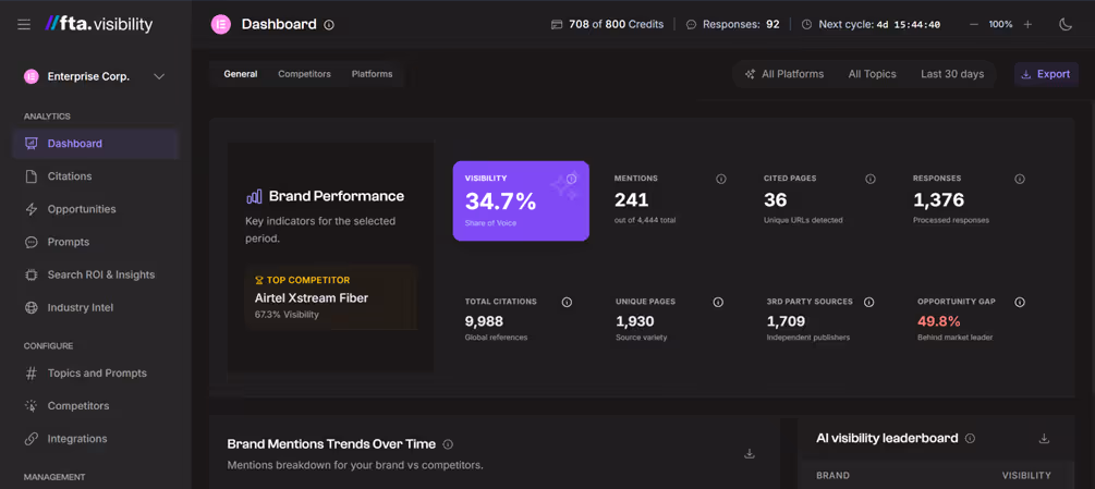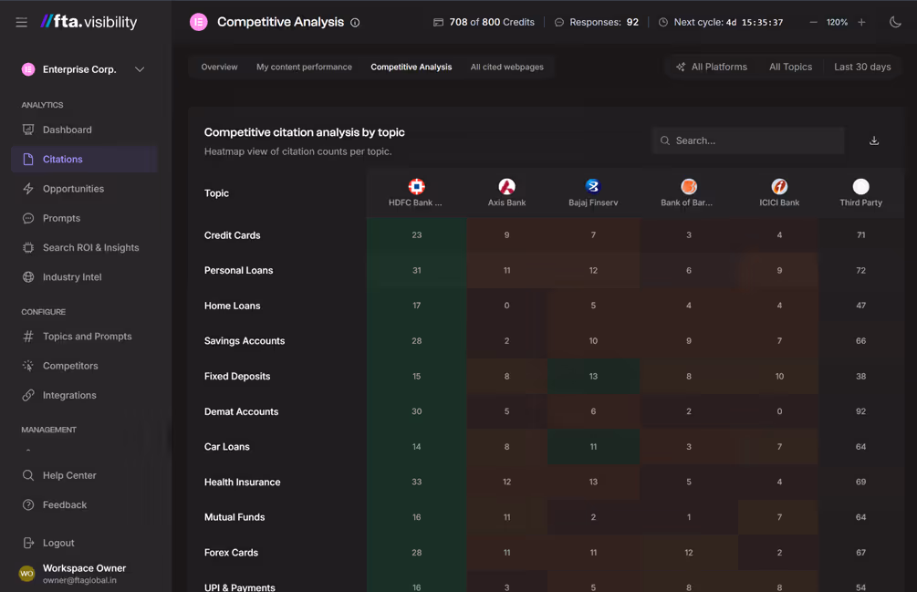 fta.visibility makes this transparent through a set of competitive and citation views that are designed for action, not curiosity.