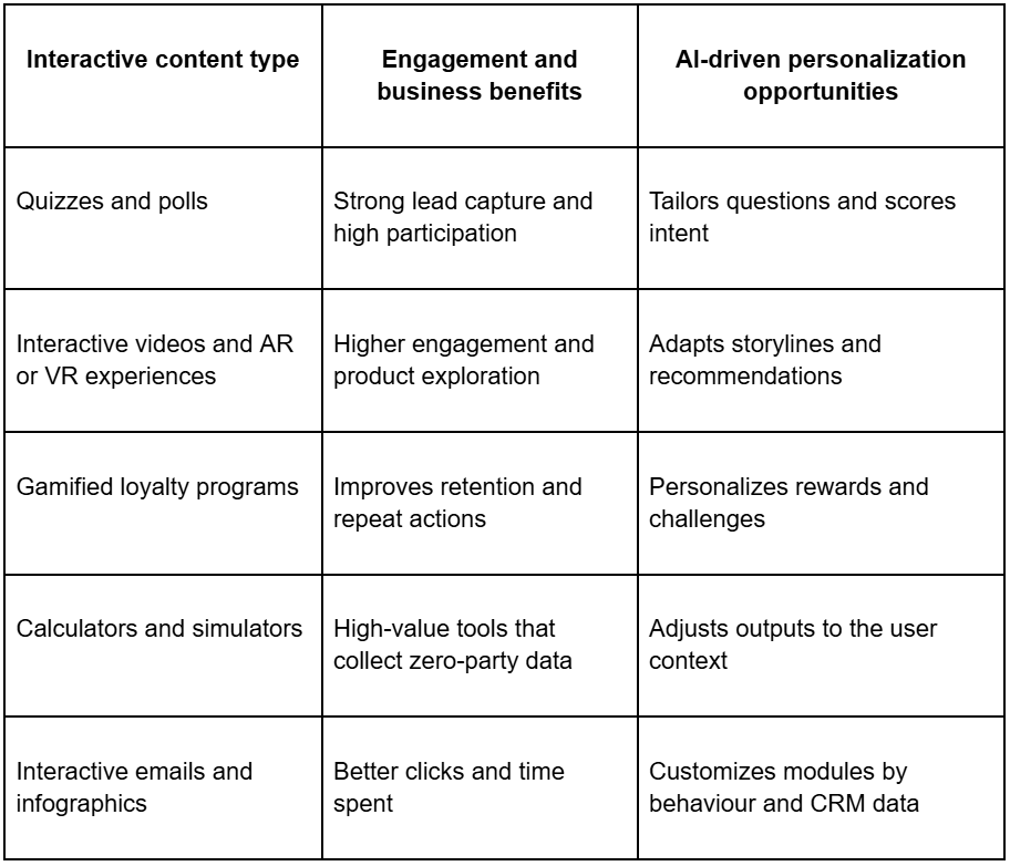Interactive content builds immersive brand experiences with AI-driven personalization.