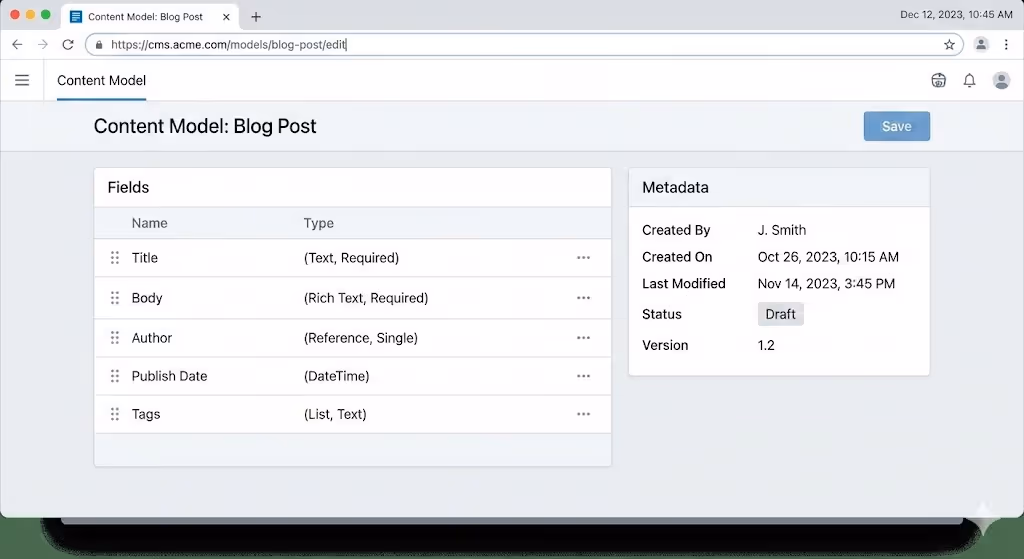 Example Content Model with Fields and Metadata