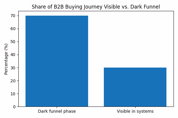 The “dark funnel” refers to all the research, conversations and influence that shape a B2B buyer long before they touch any of your trackable channels. It is the part of the journey your CRM never sees.Â