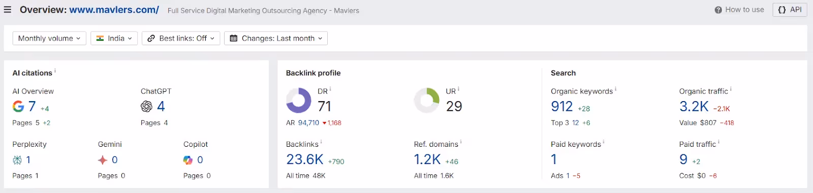 Here is an Ahrefs analysis of Mavler’s organic traffic and keywords -