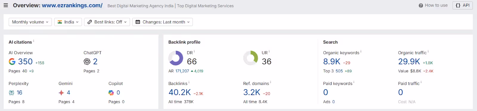 Here is an Ahrefs analysis of Neil Patel Digital India’s organic traffic and keywords: