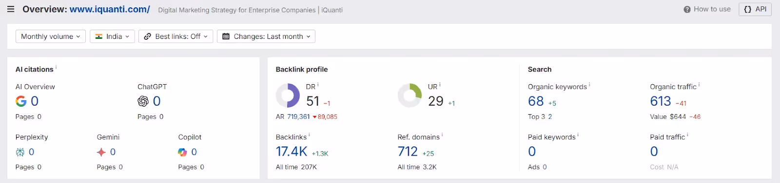 Here is an Ahrefs analysis of iQuanti’s organic traffic and keywords: