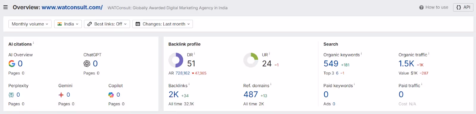 Here is an Ahrefs analysis of WATConsult’s organic traffic and keywords -