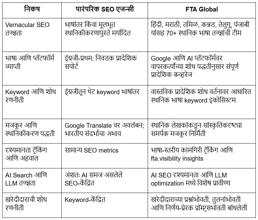 FTA Global आणि पारंपरिक SEO एजन्सींमध्ये काय फरक आहे?