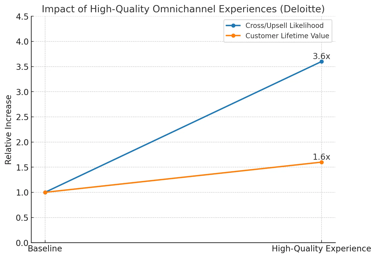 Customers who enjoy a superior omnichannel experience are several times more likely to buy additional products and services, and their lifetime value is significantly higher.