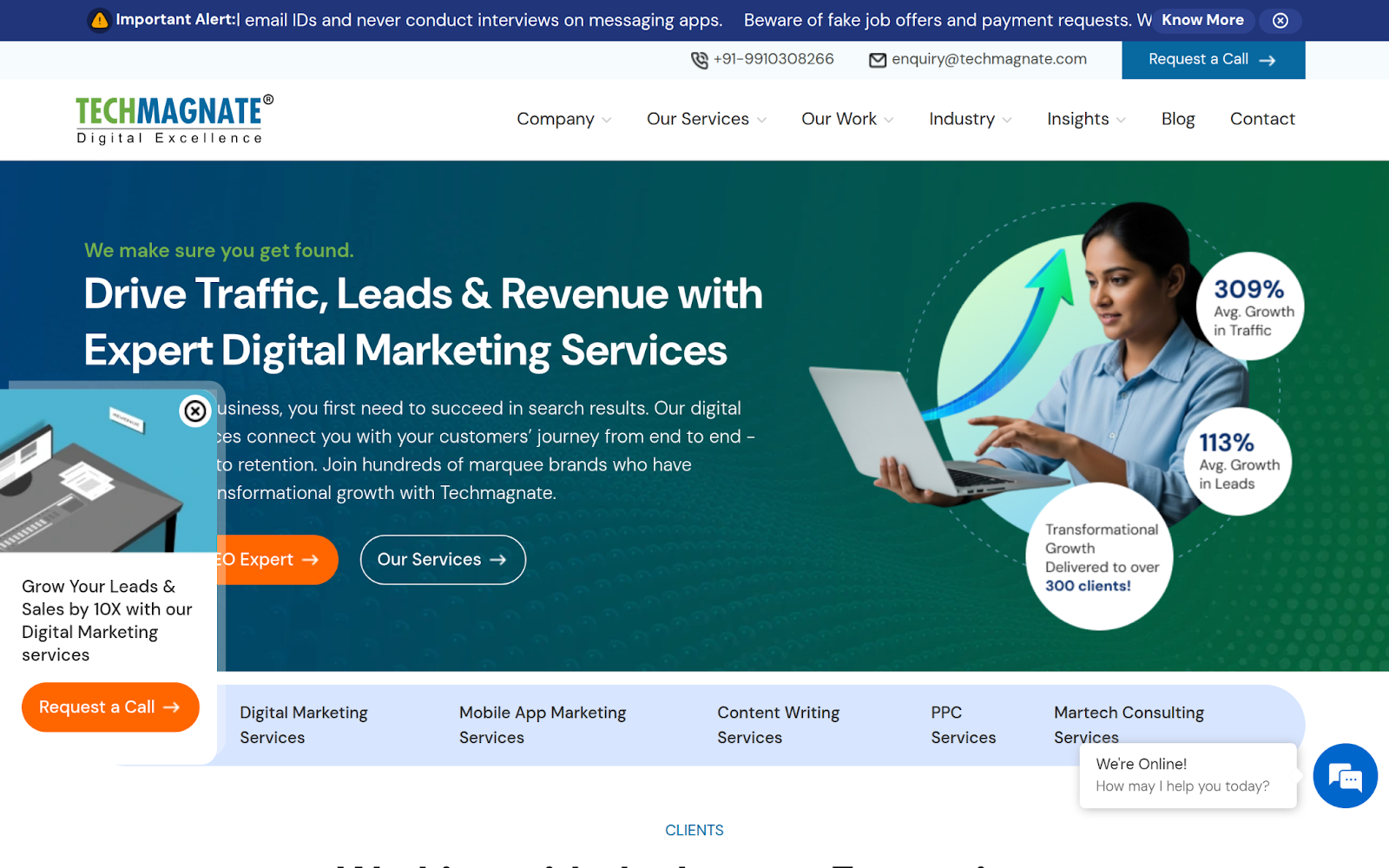 The company’s results speak to its growth‑focused approach: in 2025, Techmagnate reported an average 3x increase in organic traffic and 113% growth in leads across its client portfolio.Â