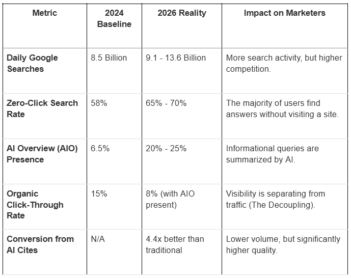 - New Baseline: In 2025, 60% of all searches result in no click to an external site. On mobile devices, this number jumps to a staggering 77.2%.